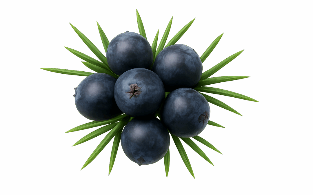 Las Bayas de Enebro son los pequeños frutos del arbusto de enebro (Juniperus communis), una planta perenne de la familia de las cupresáceas (la misma de los cipreses). Aunque se les llama “bayas”, en realidad son conos carnosos de color azul oscuro o negro azulado cuando maduran. Tienen un aroma intenso, resinoso y ligeramente cítrico, con un toque amargo y picante.